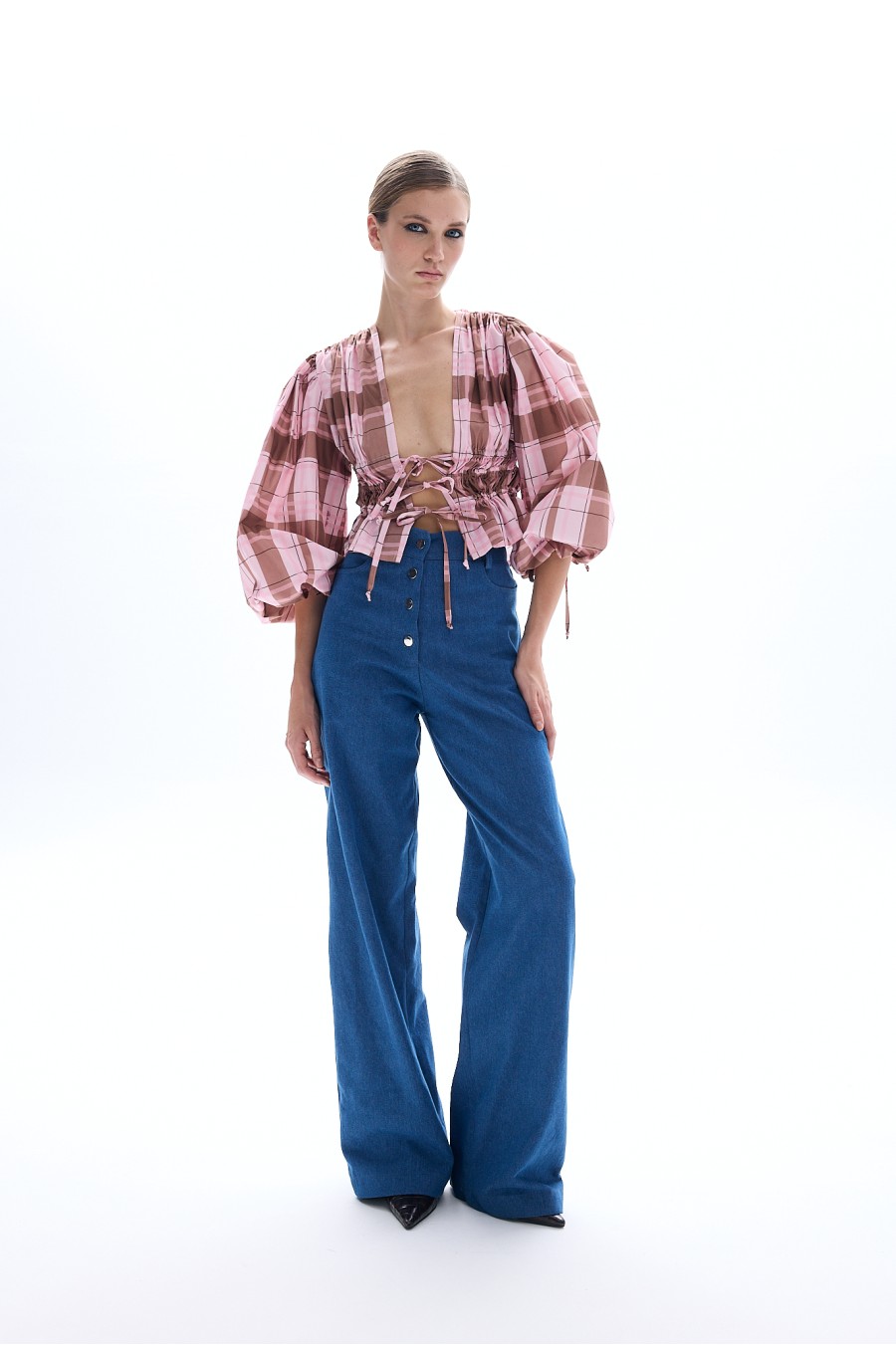 Be A Bee Couture Παντελόνι Ροζ Καρό Be A Bee