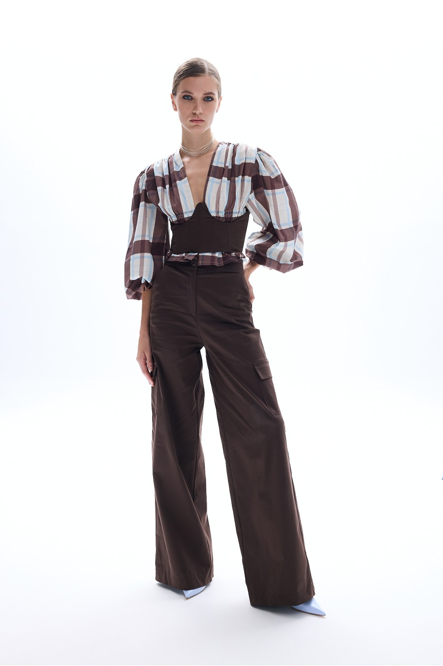 Plaid Blue Be A Bee top — plaid print with a tailored fit, possibly with structured elements and unique detailing.
