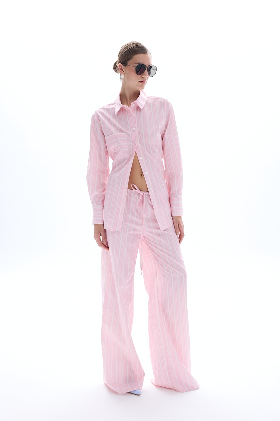 Crafted from 100% cotton, the Be A Bee Pink Pants bring ease and elegance through a loose, A-line silhouette. The pink striped print is finished with Be A Bee logo accents, making them both playful and versatile. Style with the Be A Bee Pink Shirt Maxi for a coordinated look or pair with crisp separates for everyday chic.